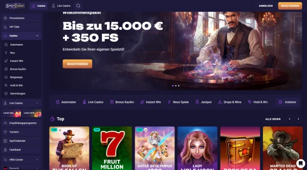 Bei Spiritcasino können Sie Spiele nach Kategorie, Anbieter und Features durchsuchen, sodass Sie schnell finden, was zu Budget und Tempo passt. Wir setzen auf Vielfalt: klassische Walzen, feature-lastige Video-Slots, strategische Tischspiele und Live-Tische in Echtzeit. Viele Titel zeigen wichtige Details im Spielinfo-Bereich, darunter Gewinnlinien, Bonusregeln und das ausgewiesene RTP, sofern es vom Studio bereitgestellt wird. Wenn Sie Spiele erst testen möchten, unterstützen viele Slot- und Tischspiel-Titel den Demo-Modus, bevor Sie echtes Geld einsetzen.